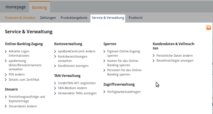 Hier ein paar visuelle Eindrücke des Onlinebankings der Apobank. Zum vergrößern bitte einfach das jeweilige Bild anklicken: