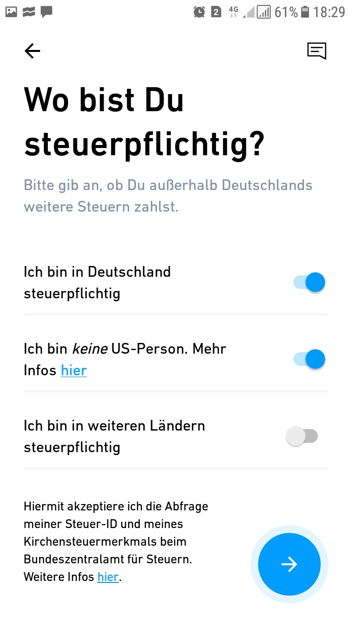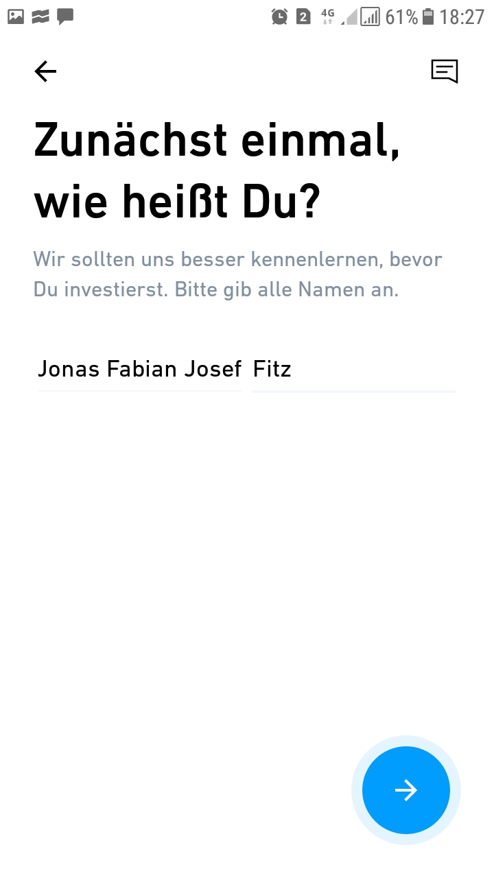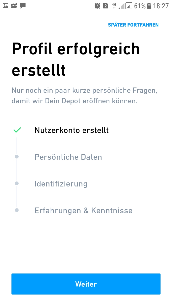 Als nachteilig empfinde ich, dass sich der Broker nur über eine Smartphone-App nutzen lässt. Im folgenden eine kleine Bilderserie aus dem Eröffnungsantrag, der innerhalb weniger Minuten über die App realisierbar ist, inklusive Identifikation;