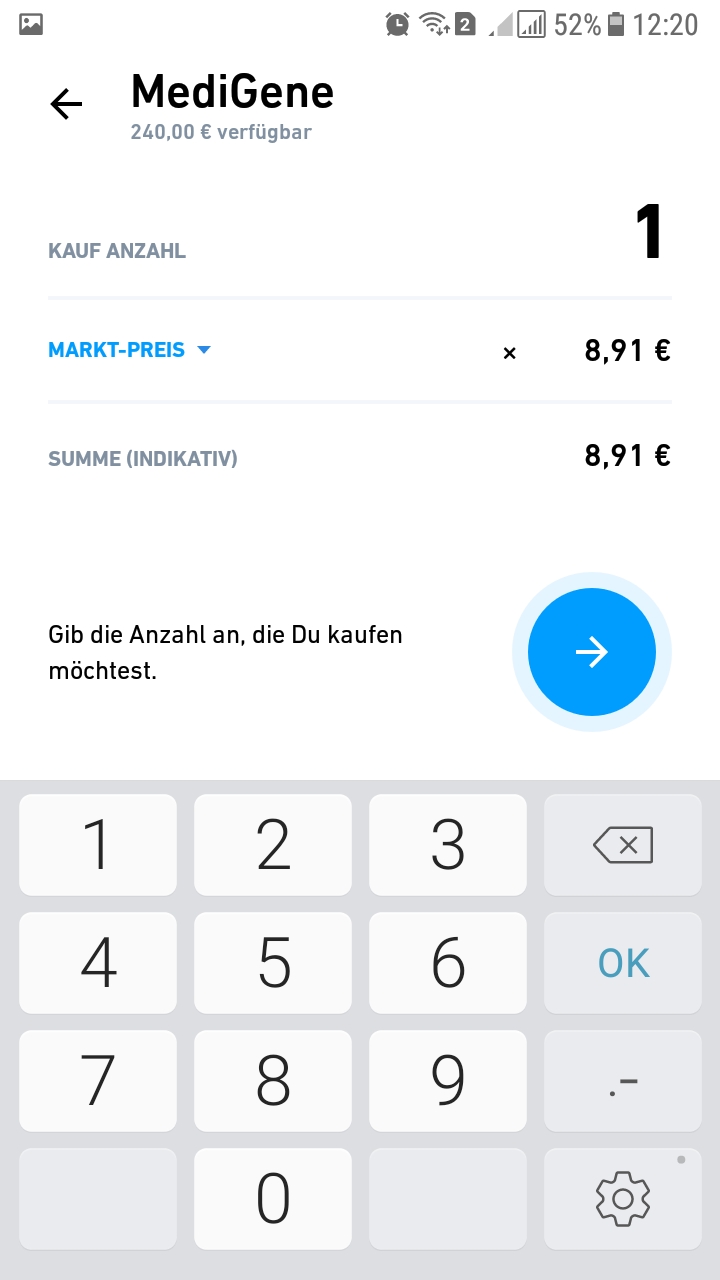 Ich habe gleich mal testweise ein bisschen Spielgeld benutzt, um Aktien zu ordern. Pro Order fällt jeweils nur 1 Euro an, es sei denn, man möchte eine Namensaktie ins Namenregister eintragen - dafür werden laut Preisleistungsverzeichnis derzeit 2 Euro zusätzlich fällig.