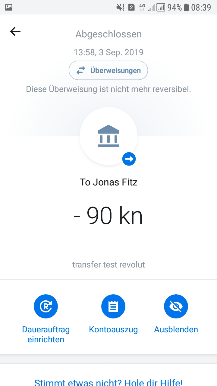 - Choosing your HRK account within Revolut, initiate a bank transfer to your HRK account (IBAN beginning with 'HR')*: