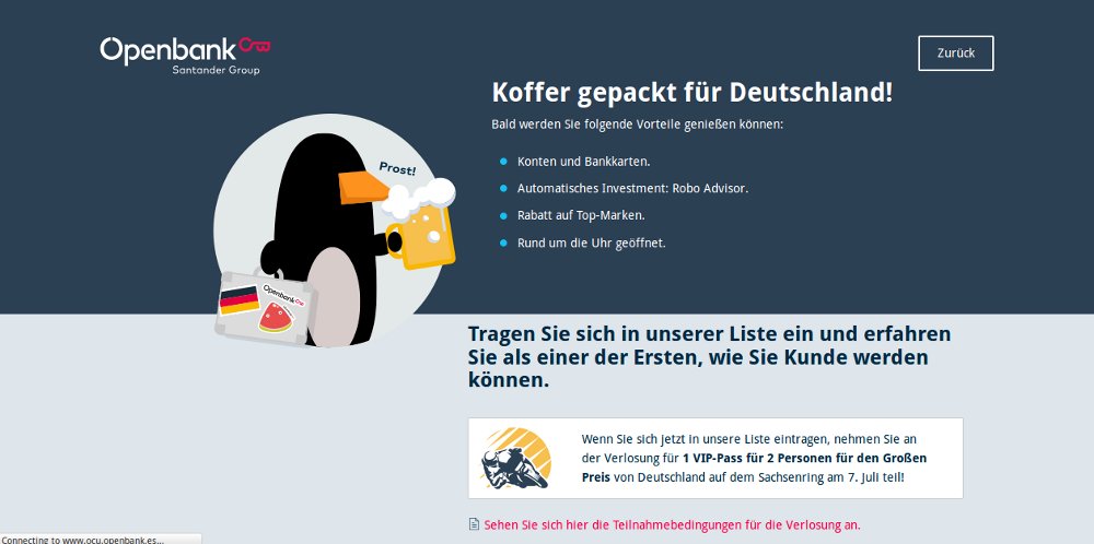 Offiziell ist die Kontoeröffnung über die Website noch nicht erreichbar. Man kann aktuell nur den Newsletter abonnieren, um informiert zu werden, sobald man sich anmelden kann. Siehe Screenshot: Allerdings scheint im Hintergrund schon alles für den Release vorbereitet zu sein, denn ich konnte mich am 09.06.19 bereits anmelden. Dabei gibt es einen kleinen Trick. Der folgende Screenshot sollte helfen: Meine persönliche IBAN (welche mit dem spanischen Ländercode "ES" beginnt) habe ich bereits bekommen.
