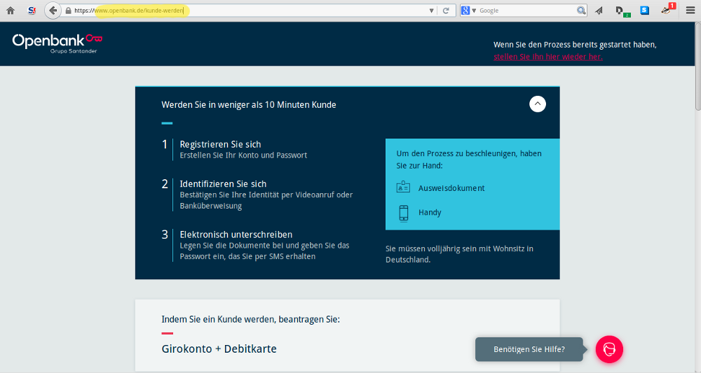 Man sollte einen Reisepass oder einen deutschen Personalausweis bereithalten. Die Ausweisnummer braucht man später bei der Anmeldung in der App (welche bereits bei Google Play verfügbar ist).