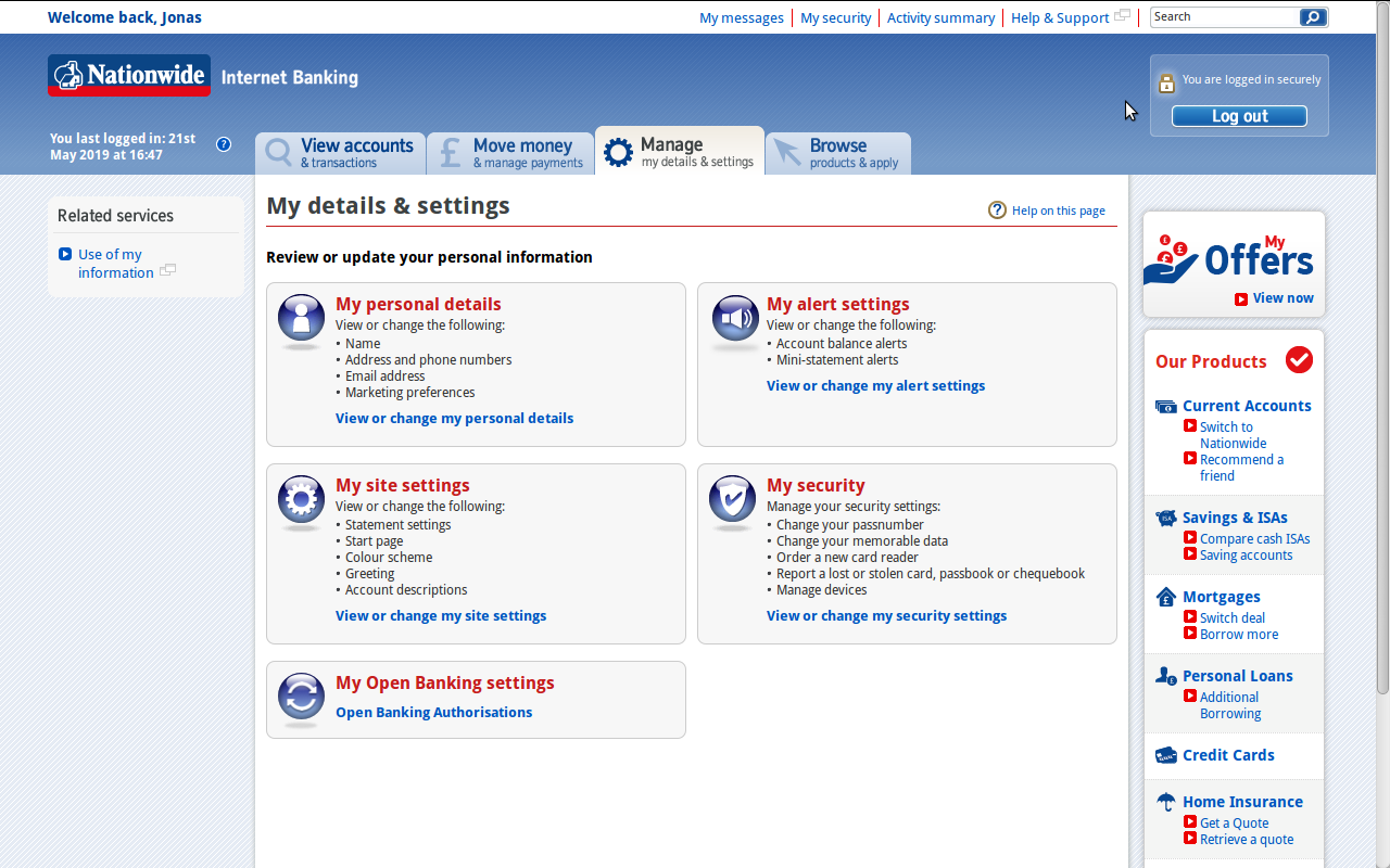 Nach dem Ausfüllen des Eröffnungsantrages, dem ein Adressnachweis (proof of residency, z.B. Kontoauszug) beizulegen ist, sucht man eine Filiale der Nationwide Building Society auf. Man legitimiert sich dann vor Ort mit seinem Reisepass.