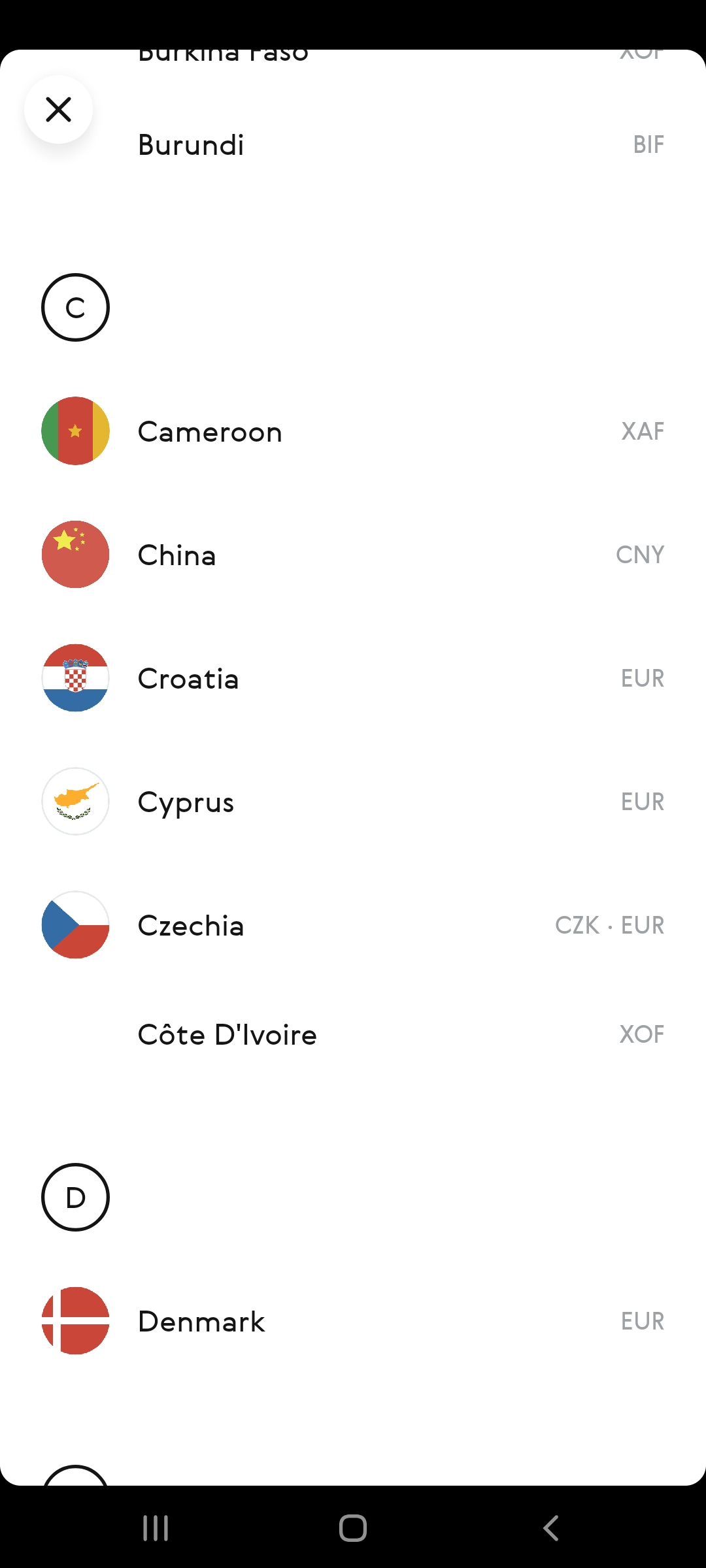 Folgende Währungskonten kann man in der App anlegen: